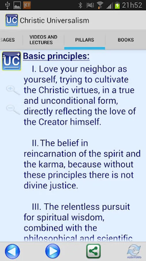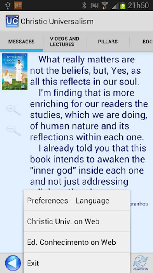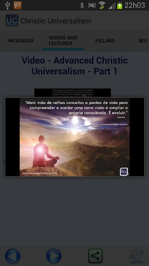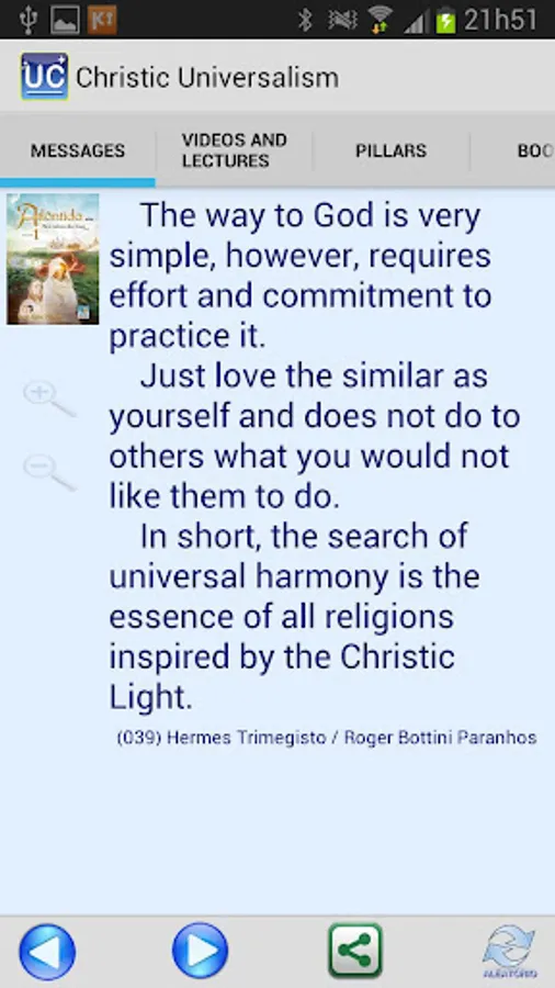 It is comprised of videos and messages Universalists (displayed beside to its respective book) taken from books of Roger Paranhos and Hermes Trismegistus, aiming to provide you valuable moments of reflection in your day-to-day.