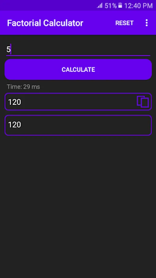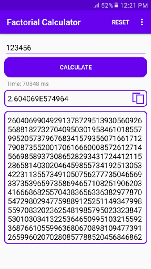 + Lightweight and works fast: uses smart algorithms for calculating factorial and converting result to string. So the app performance can amaze you!