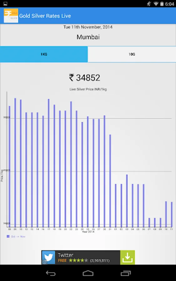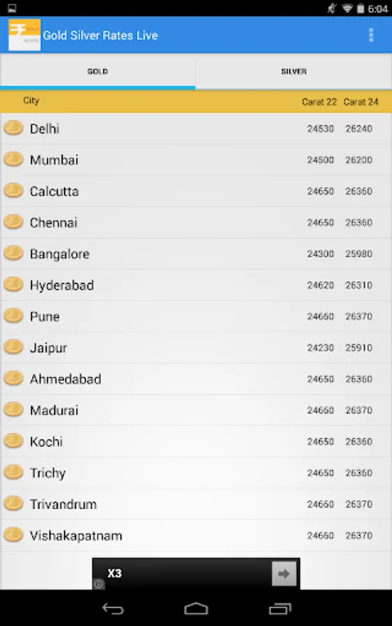 This Android application helps you track live Gold and Silver prices in major Indian cities.