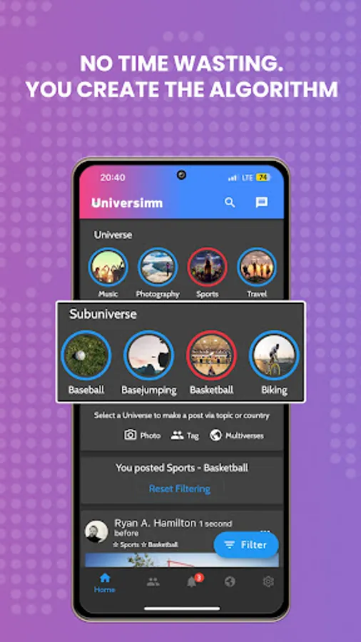 What sets UNIVERSIMM apart is its innovative filtering system connecting you with niche topic discussions and communities that cater to your unique hobbies, professions, and interests. Post only relevant content with location based targeting for posts, which is a 1st of its kind in social media and say goodbye to intrusive tracking with an differentiated business model that will be very desirable for business owners.