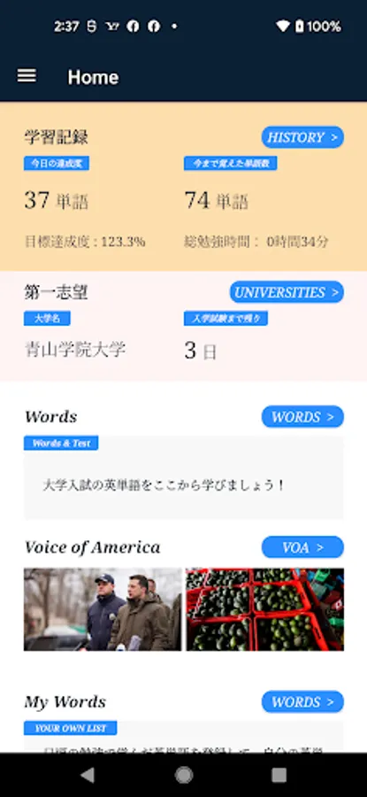 As the name of the app, English for university entrance exams is an app for learning English words necessary for university entrance exams. The app has various English learning functions!
