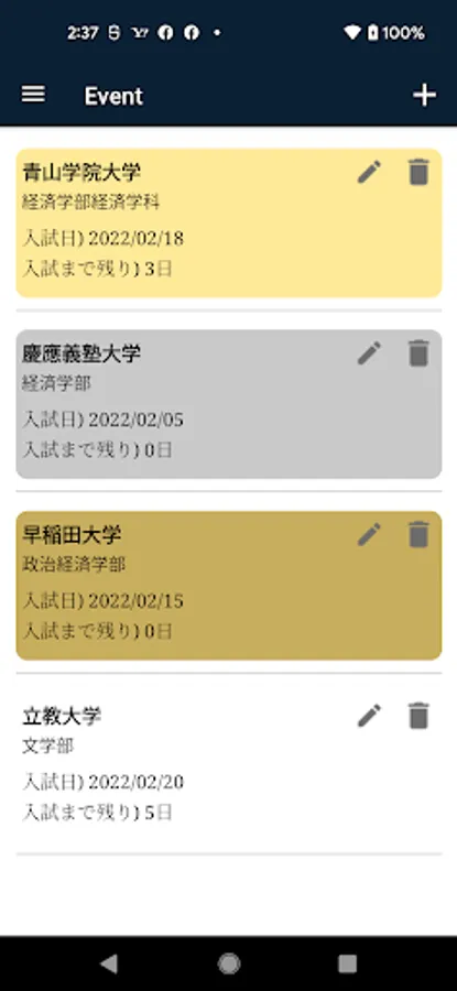 You can register the university or faculty you plan to take the exam. By registering, you can check the number of days until the test date. It is important to take the exam one day a day, so let's quantify the remaining days so that you can see it and study systematically every day!