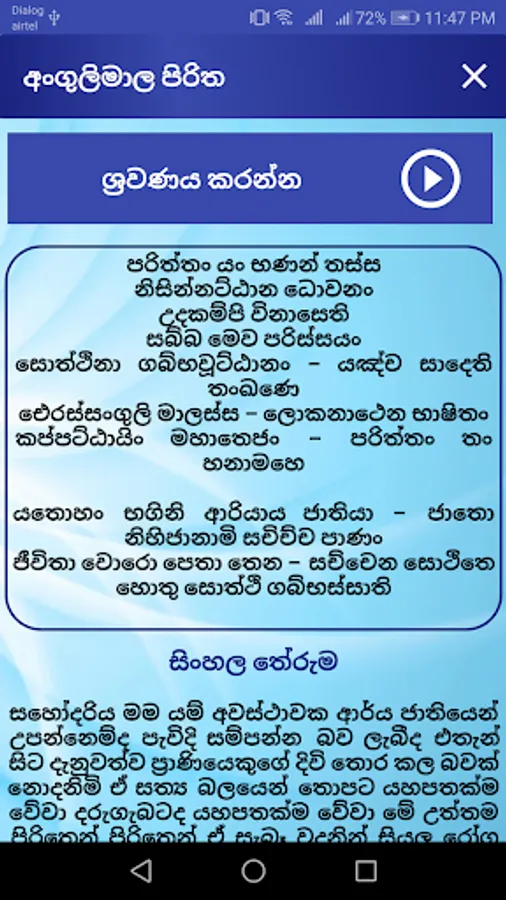 Angulimala Theros who visited the woman went to the Pirith Chapel and immediately gave birth to childbirth without any pain.