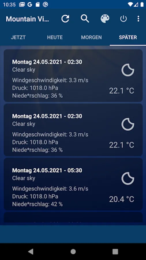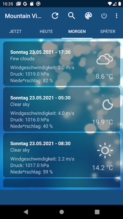 The application provides all the weather-related information you need based on your location. You can also check the weather conditions and forecasts that refer to any location in the world.