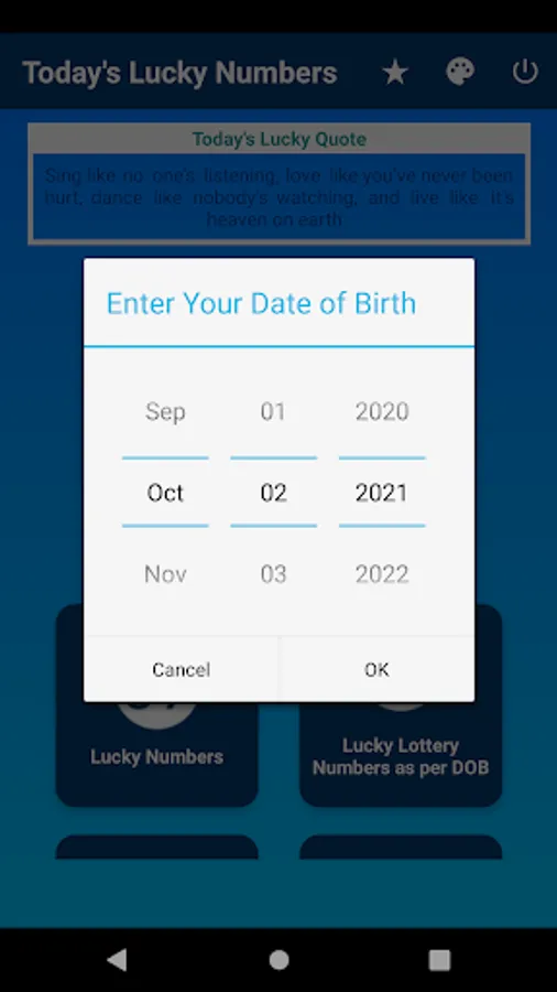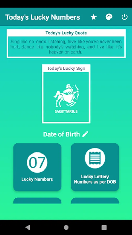 Lucky numbers today app generates lucky numbers, lucky colors, lucky letters according to your date of birth. Also it will predict the probable lucky numbers you should consider when buying lotteries.