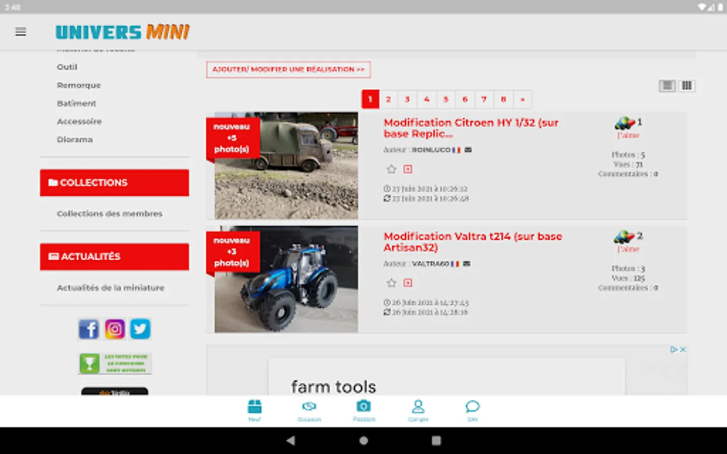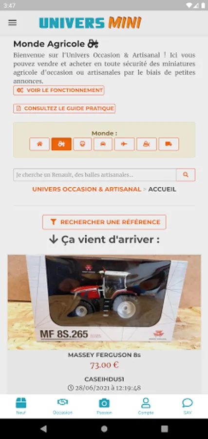 - Occasion universe: buy / sell your agricultural miniatures safely.