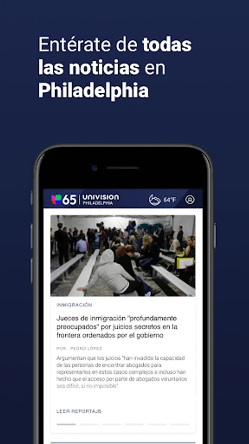 Univision 65 Philadelphia is the news portal for the Hispanic community in the US. Immigration news, 2020 elections, politics, California lottery results, weather information, economy, business, finance, education, health, environment, tropical storms, tornadoes, hurricanes, United States, President Donald Trump, deportations , among others. You can also find out about opinion notes and much more.