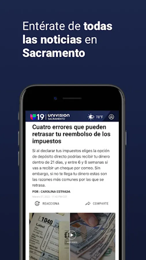 Univision 19 Sacramento is the news portal for the Hispanic community in the US. Immigration news, 2020 elections, politics, California lottery results, weather information, economy, business, finance, education, health, environment, tropical storms, tornadoes, hurricanes, United States, President Donald Trump, deportations , among others. You can also find out about the opinion notes and much more.