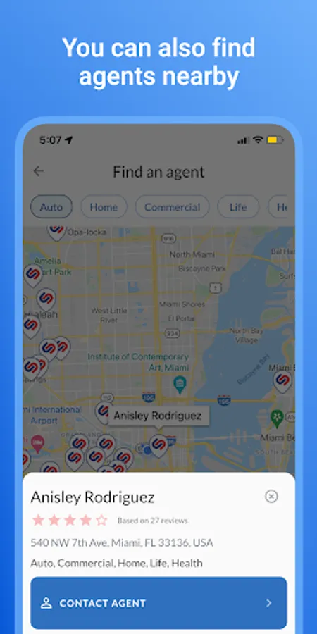 Our app makes it easier to purchase insurance. You can either talk to a nearby agent or have one contact you based on your insurance needs and location. Not only do we offer you the lowest rates but we will come to you. Try us out, we are only a click away.