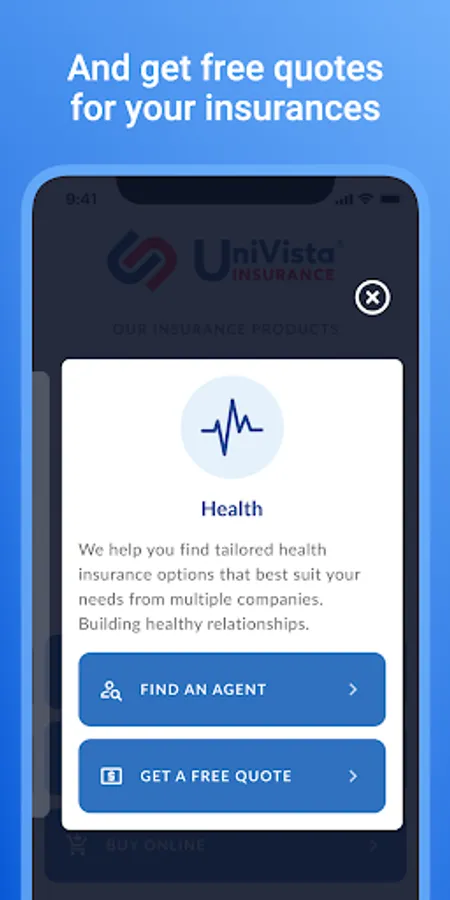* Health Insurance - We help you choose a health insurance plan that best accommodates your needs from multiple companies. Building healthy relationships with both, companies and customers is a top priority here at UniVista Insurance.