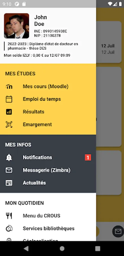 Student at the University of Lille, log in with your ENT credentials and take advantage of all the features offered by the application: