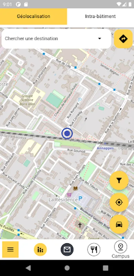 - A geolocation that allows you to find your way around the campuses and to go to the essential places and services of your daily life.