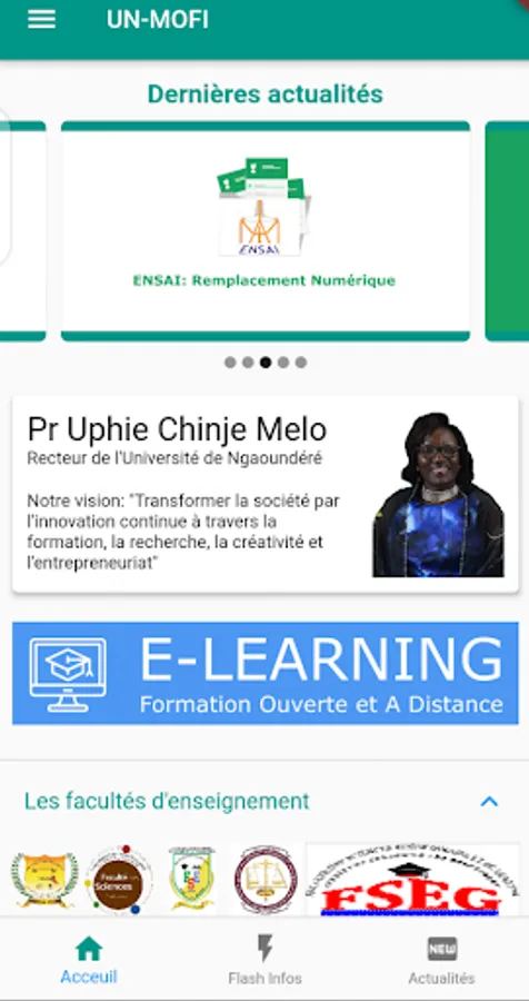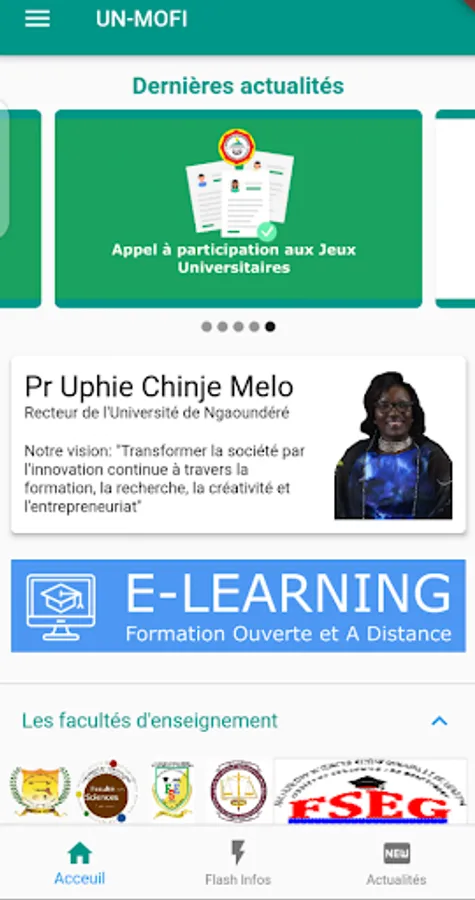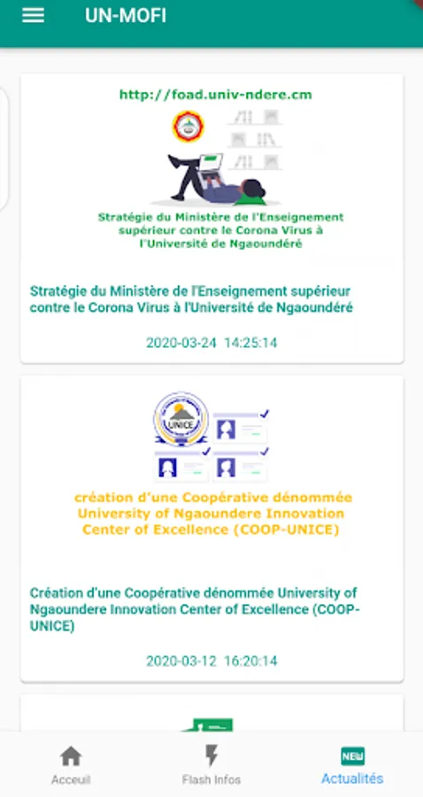 The mobile application UN Mobile Flash Info (UN-MoFI) aims at increased visibility of the University of Ngaoundere in terms of information. The main objectives are: