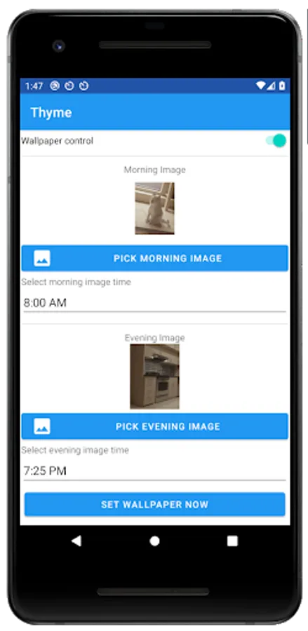 Ever wanted to have a different wallpaper on your device during the day? Want a darker, less glaring wallpaper automatically applied at night? Well, Thyme may be the app for you.