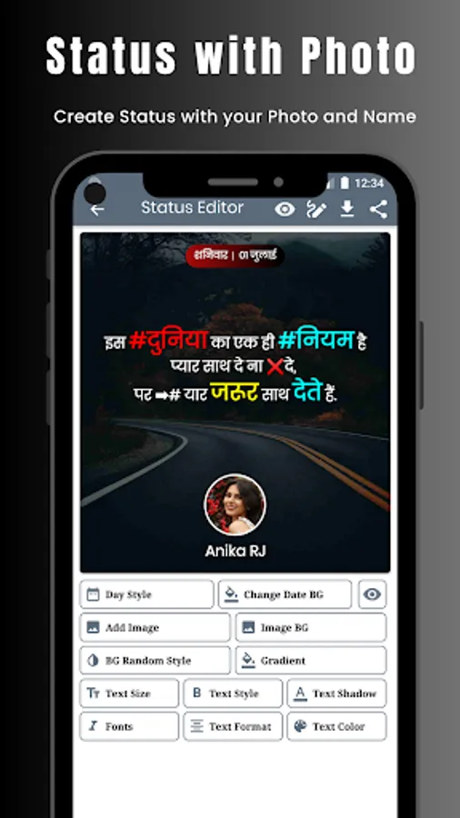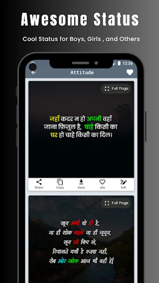 With the help of this app, you can create excellent attitude Shayari, quotes, and status. Good collection of image backgrounds, text style, and font.