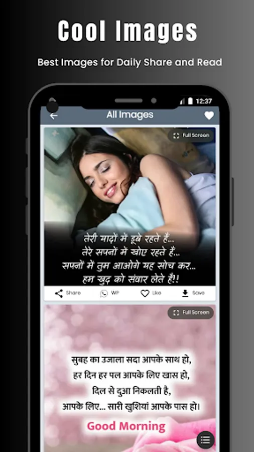 - Download and save shayari images in hindi and english.