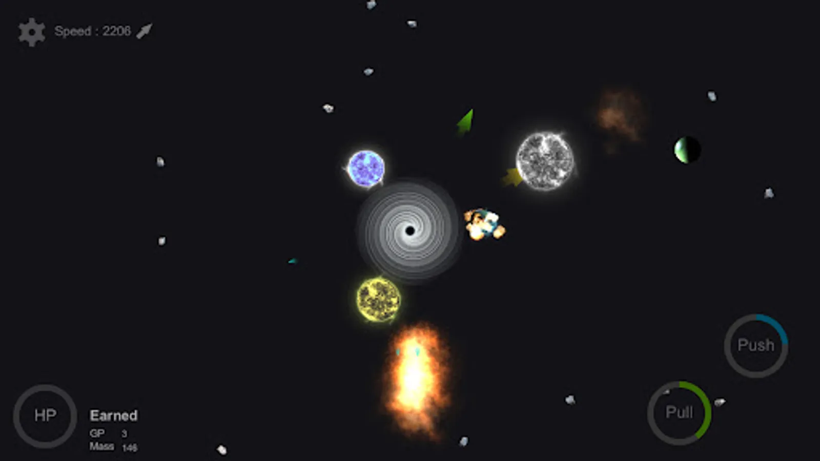 Roaming sandbox universe and discover wandering planets or solars, your solar system can earn GP and mass. GP is important to build your system. It is very easy to earn, simply roaming the universe and near other planets you will receive a GP.