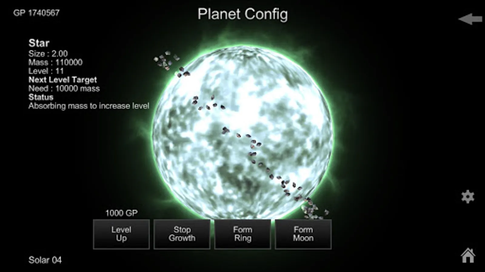 Roaming sandbox universe and discover wandering planets or solars, your solar system can earn GP and mass. GP is important to build your system. It is very easy to earn, simply roaming the universe and near other planets you will receive a GP.