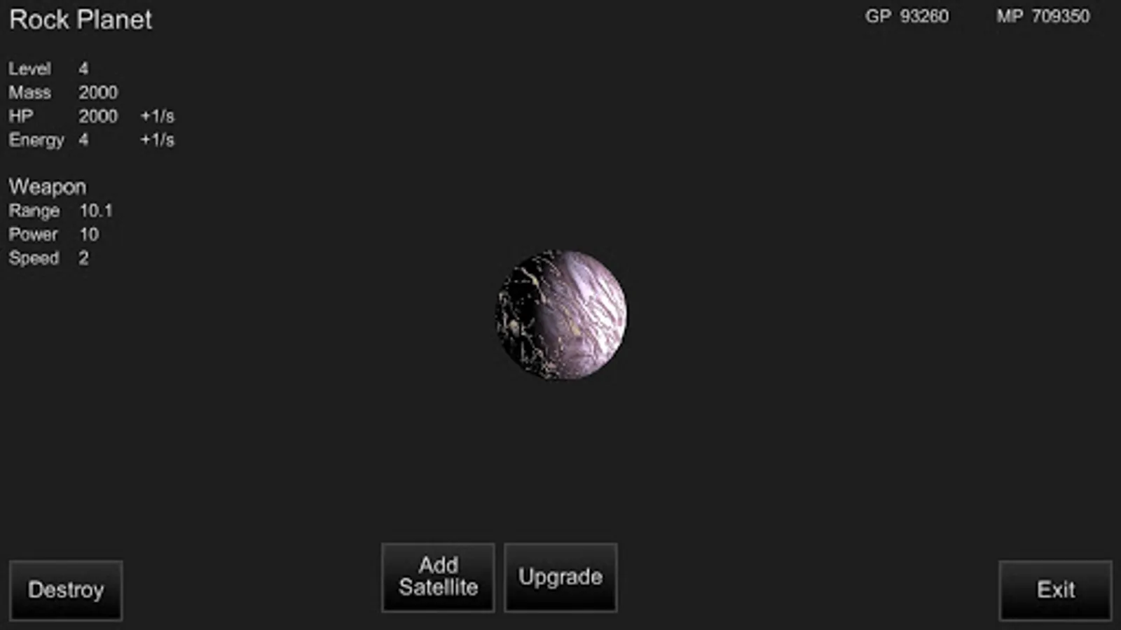 It is special type of solar system games, you need to build your own solar system by collecting asteroid to get MP, and destroy enemy planet to get GP.