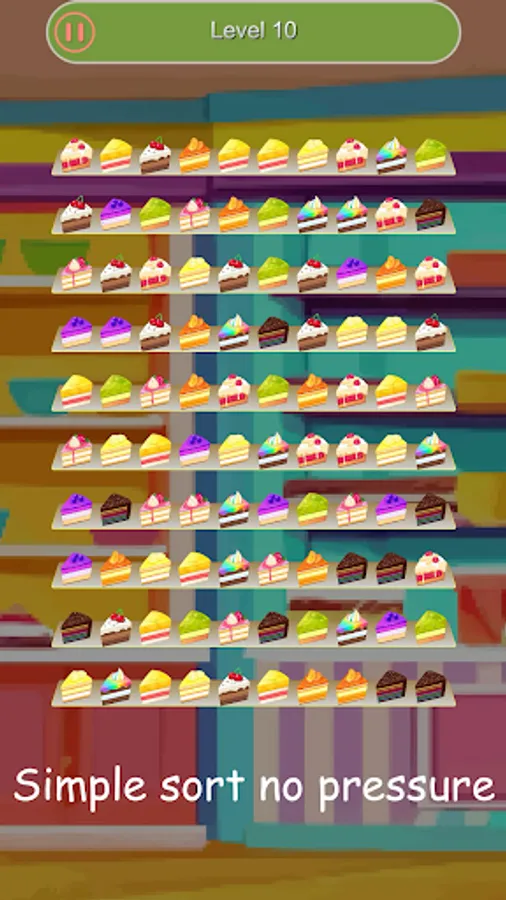 It is a no pressure puzzle. Simple sort and arrange the cake.