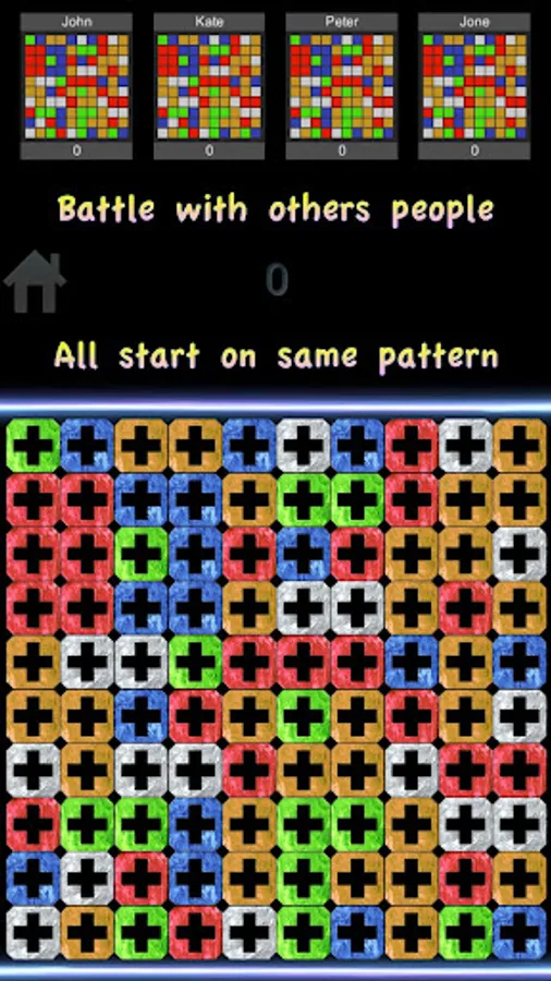 All players are using same patterns to play, and need to get the score as highest as, as fastest as they can.