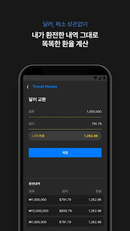 1 Connect to the app and save the details of your conversion from KRW to USD through the dollar exchange function.
