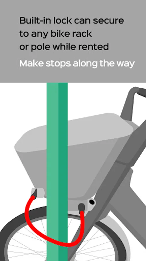 3. Ride - The bike’s electric drive system will make pedaling effortless as you take in the sights and feel the wind in your hair. If you want to make a stop, use the built-in cable lock to secure the bike to a rack or pole. It will remain rented until you’re ready to head back (or to your next destination).