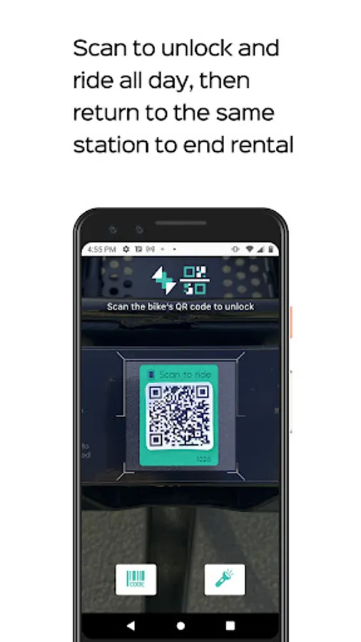 2. Rent - Scan the QR code on any available e-bike to begin your rental, and it will automatically unlock from the station.