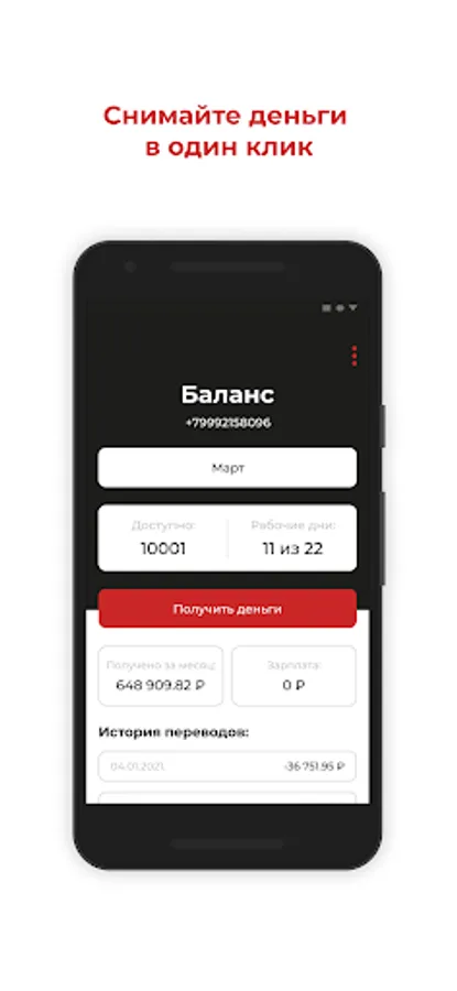 The application makes it possible to withdraw your earned money at the moment when you need it, and not on the dates set by the employer.
