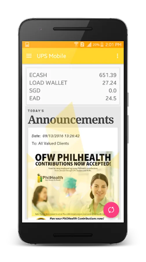 -Unified Products and Services Remittance offers services like Ecash Padala, Ecash to GPRS outlet, Ecash to Ecash, Ecash to Load fund, Ecash to SGD Load fund, Smartmoney, Ecash to MyVisacard, Ecash to VisaCard, Ecash to credit to bank and remittance payouts like Iremit, Transfast and New York Bay.