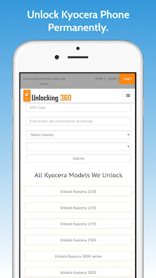 With our Unlocking360.com unlock KYOCERA Phone app you will be able to unlock your KYOCERA mobile phone by IMEI code. This method is fast and safe.