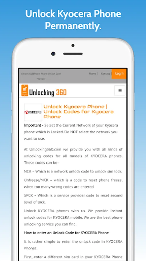 With Unlocking360.com’s Unlock KYOCERA Phone app you can: