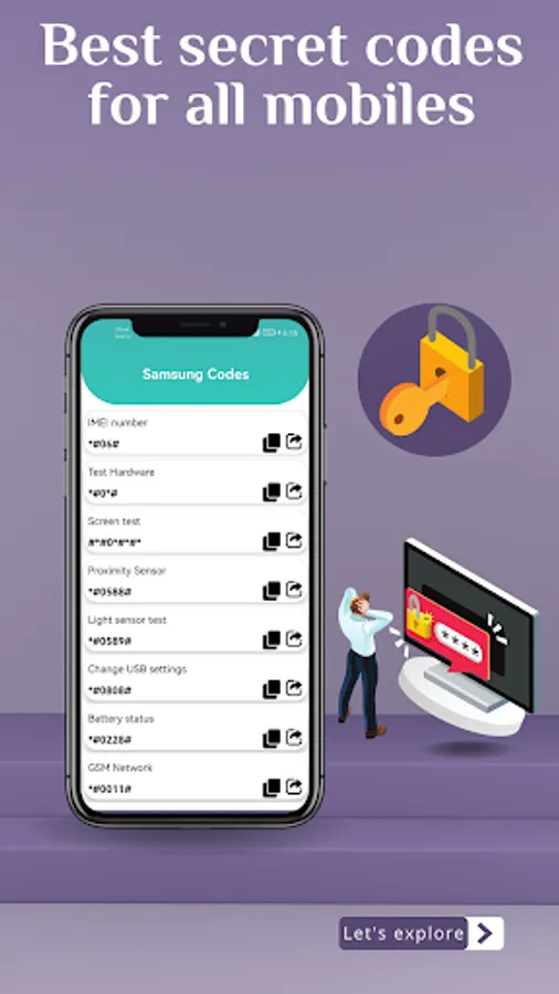 We are proud to present our latest app, Secret Codes & Unlock Device, designed to provide users with a convenient and comprehensive guide for unlocking any device using a variety of techniques such as software unlock, trick unlock, and network unlocks. Our app also features an IMEI checker for easy device activation. With a vast collection of secret codes, you can effortlessly access your phone's IMEI serial number and explore various functionalities of your device.