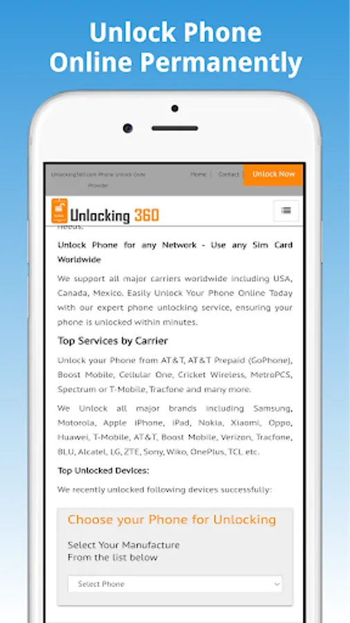Unlocking360.com has provided unlock phone services worldwide for 10000+ customers so far successfully. Use phone unlock codes to unlock your phone carrier and network online today.