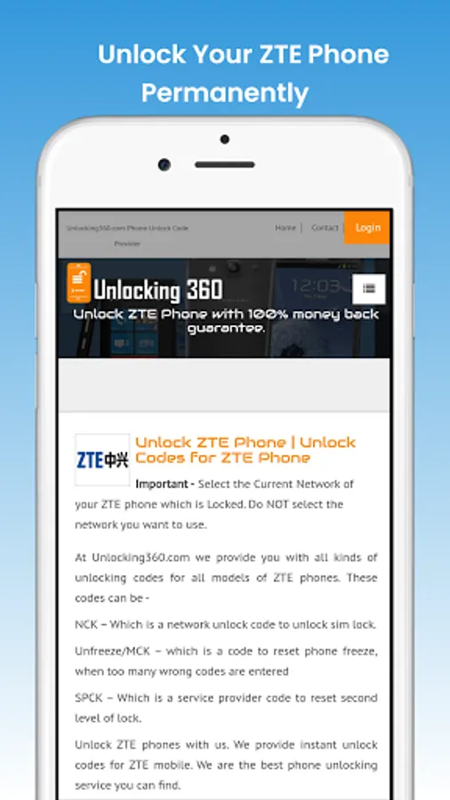 With Unlocking360.com’s Unlock ZTE Phone app you can: