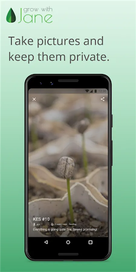 Your plant's photos can be your own thing. Take photos and create notes for any of your plants and keep them securely on your device without them appearing in your gallery. Especially useful for cannabis growers who might hand off your phone to friends or family.
