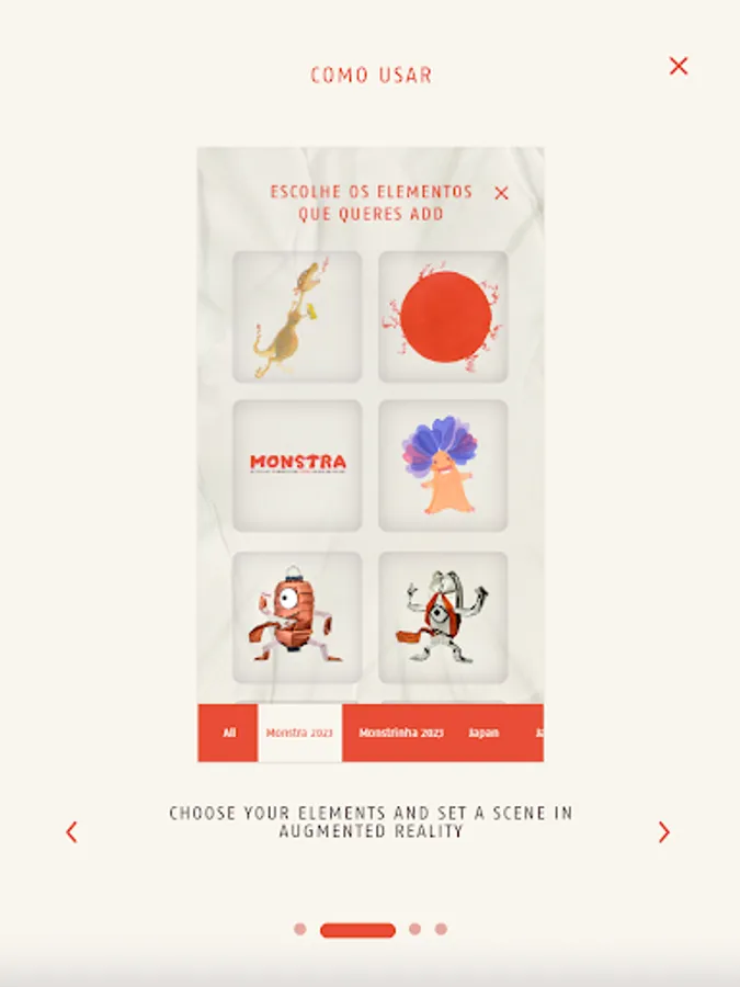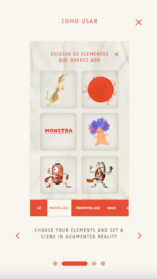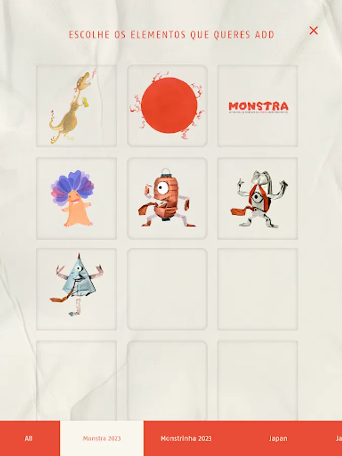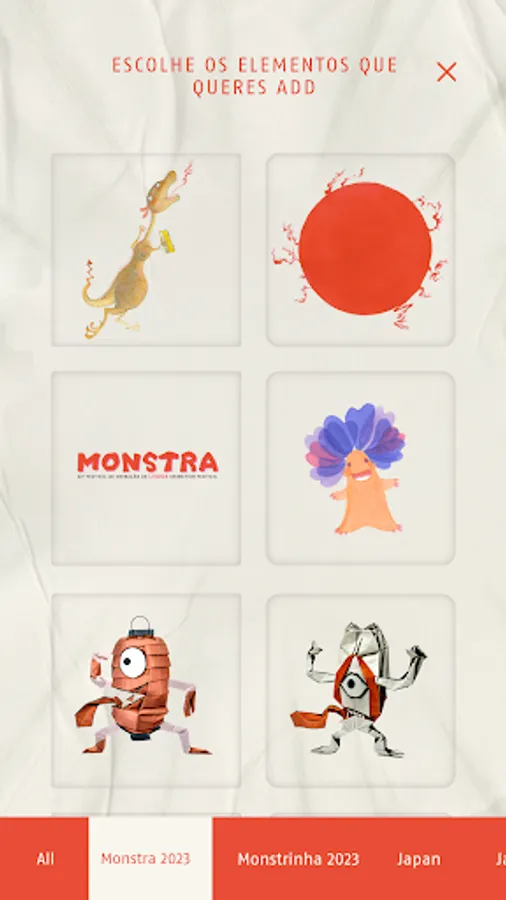 Each year MONSTRA Lisbon Animation Festival showcases the best of animation cinema to Lisbon and the world. Our mobile app empowers you to become an animator and tell your own stories, wherever you are. Log in, set your compositions and save them to your account. You have endless combinations possible with the mascots for 2023's MONSTRA and MONSTRINHA, as well as original monsters from the festival's 2023 guest country, Japan. Set your creativity loose!