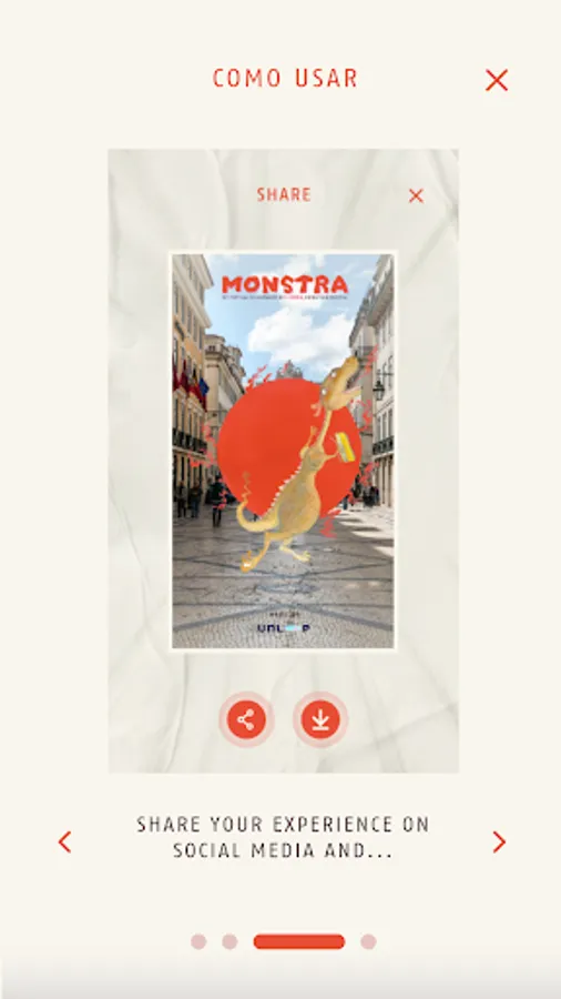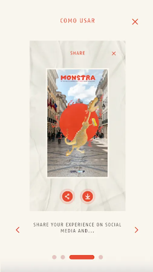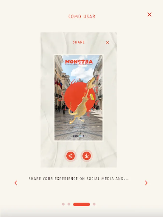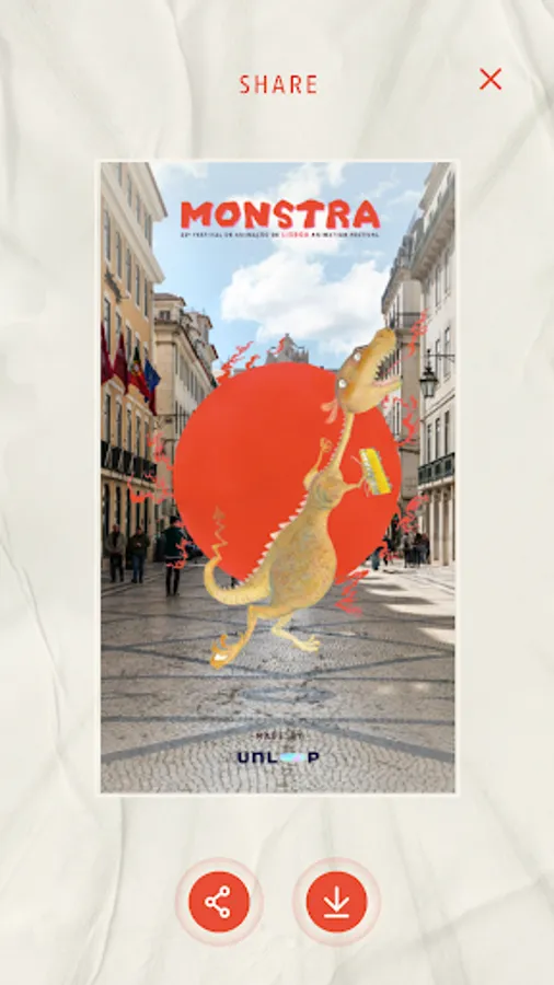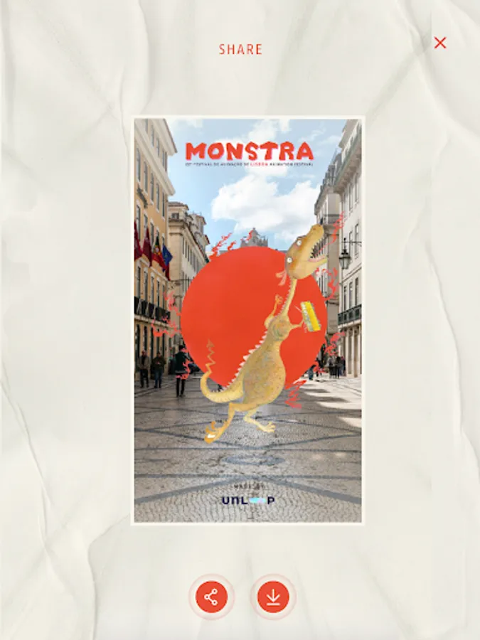 Set MONSTRA loose in your city through your screen! Place animated characters and illustrations in your surroundings through augmented reality. Create your own MONSTRA festival picture, save it in the app gallery or share it with the world.