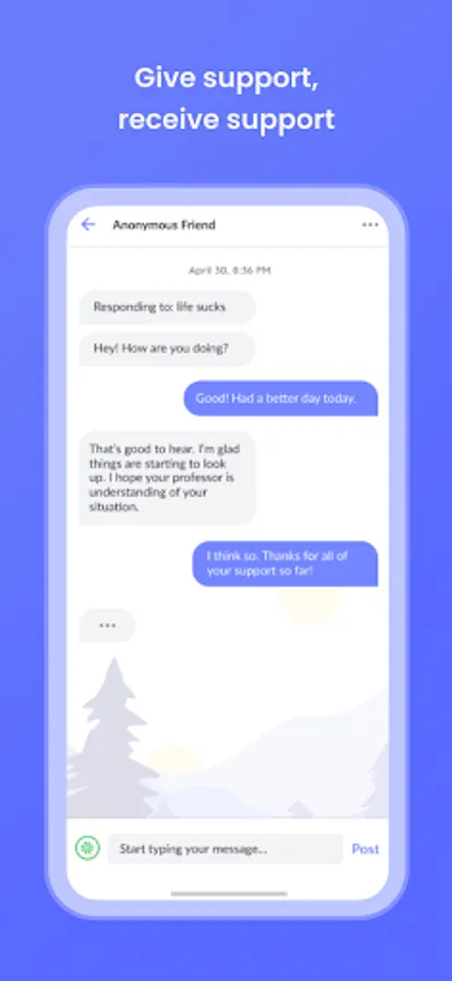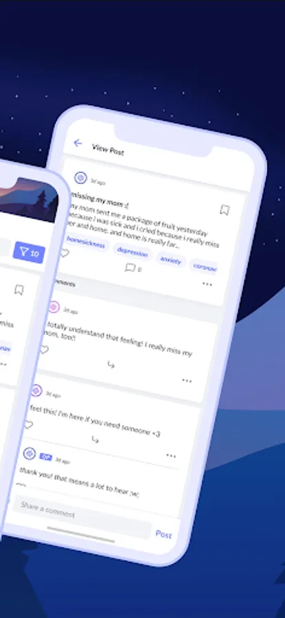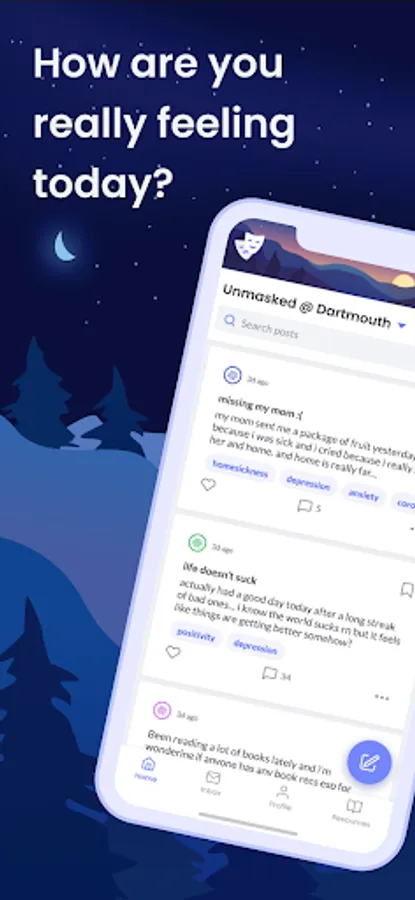 Unmasked is a supportive, anonymous community for college students. Users can post on the main message board, comment on posts, and direct message each other.