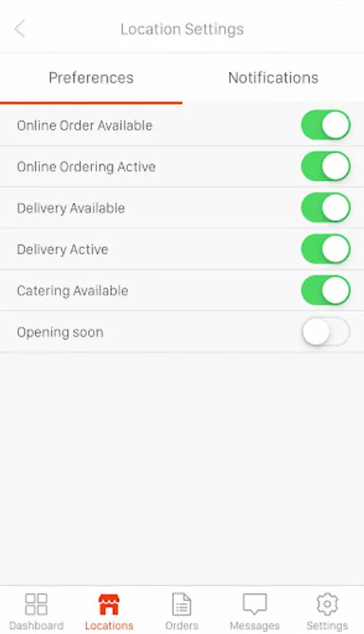 - Easily view all your business locations and see in real-time which locations with online ordering are online or offline.