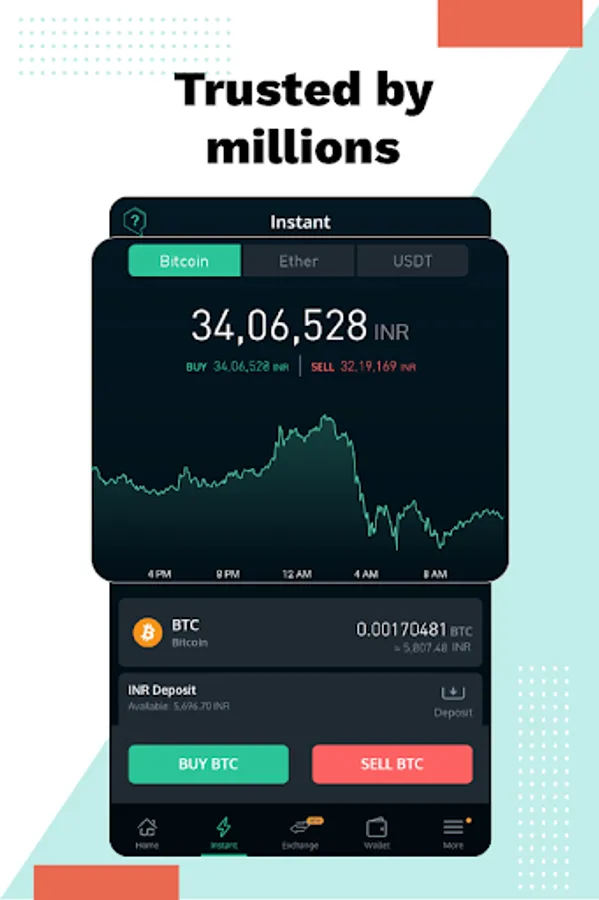 The Unocoin app is tailored especially for trading and managing your crypto account in the quickest way possible. Trusted by millions and loved by all, you can sell, exchange, and buy crypto assets like Bitcoin, Doge, Shiba Inu, Ether and over 80+ coins on the Unocoin app.