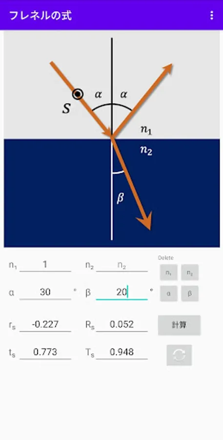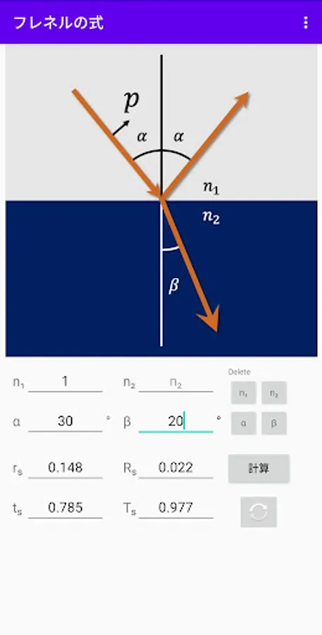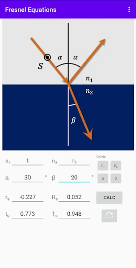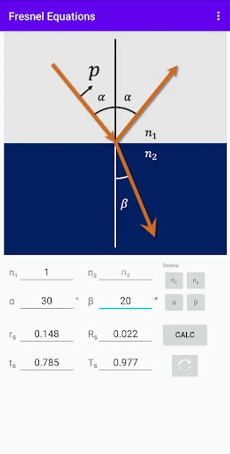 This app calculates the value, following Fresnel equations.