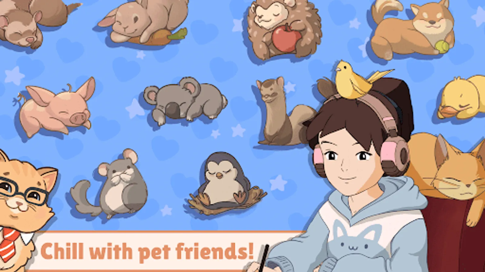 Relax with cute pet friends, listen to chill lofi music, enjoy the story, try different minigames and more!