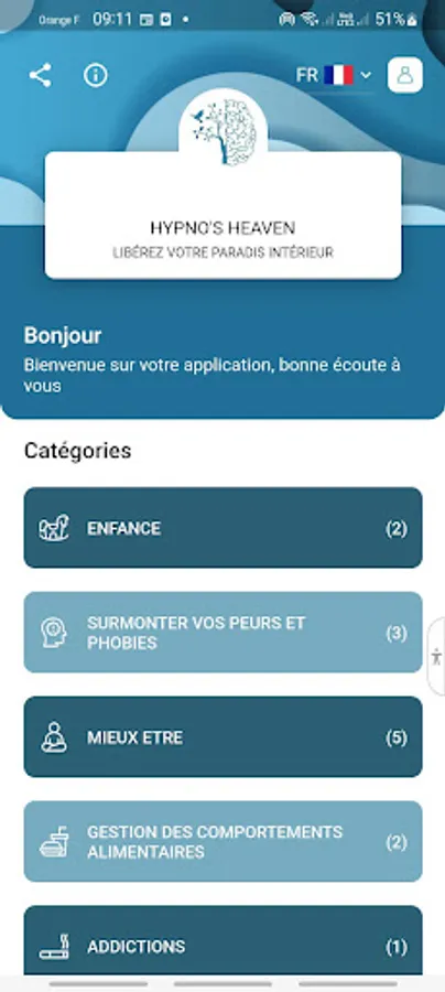 The application will allow you to follow different self-hypnosis programs to work on your well-being and fight against possible addictions. As part of the remuneration of therapists, some programs are available in Premium version.