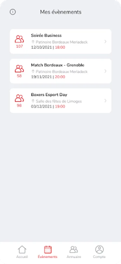 The Boxers Business Club application allows private and institutional partners to have access to the directory as well as to club events.