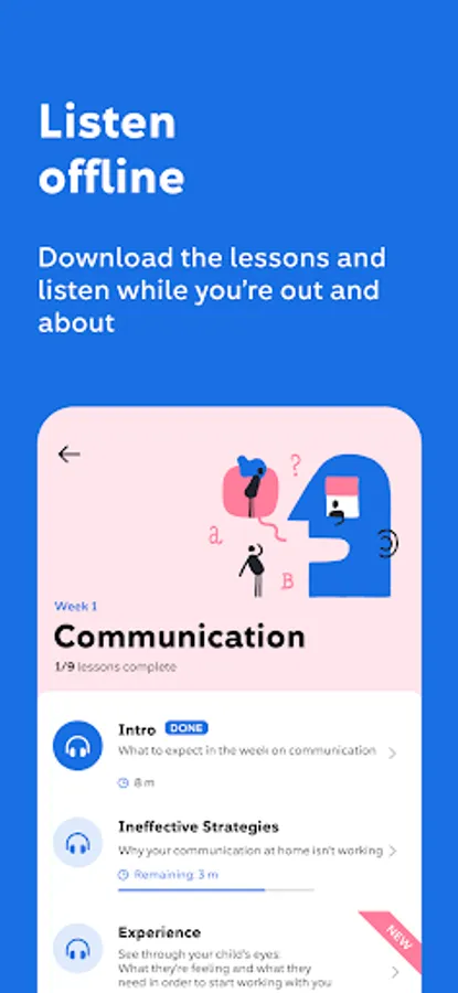 Would you like to listen to Unparenting on the playground or on the way to work, but you don't have data on your phone? Or you're going somewhere that might not have a good signal? No problem. You can download all lessons to your phone with a single click and listen to them as audio only whenever you like, even without an internet connection.
