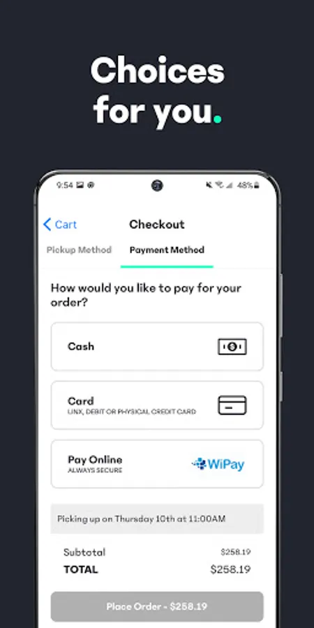 You decide: You can pay cash or card on pick up or delivery. Or, you can reduce the wait even further and settle upfront by making an in-app payment with your credit or debit card.
