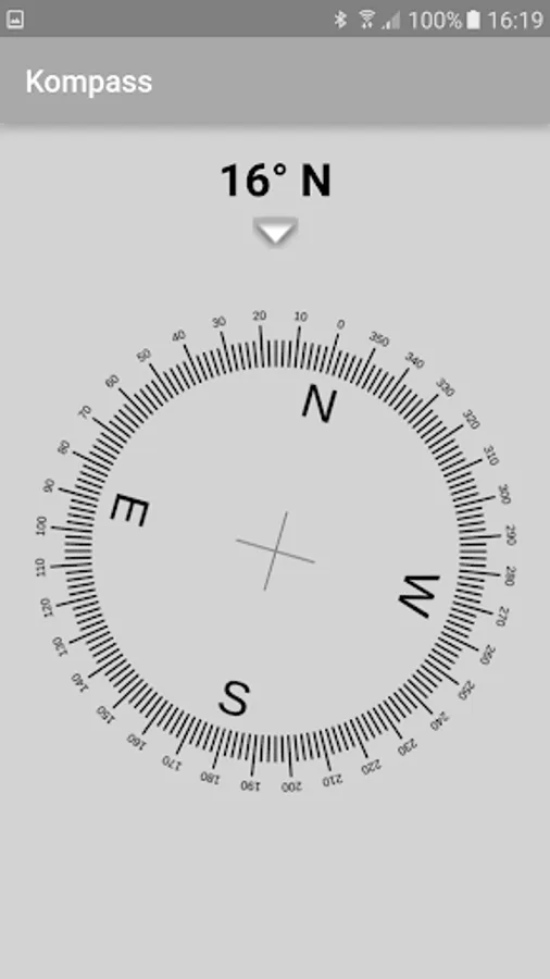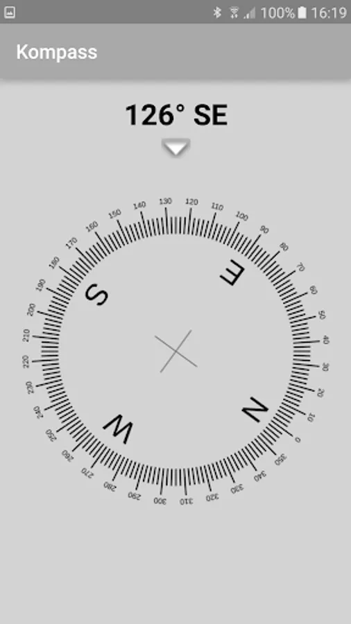 Kompass compass shows direction of north, south, east and west, and shows degrees.