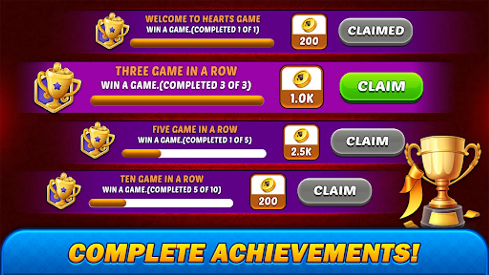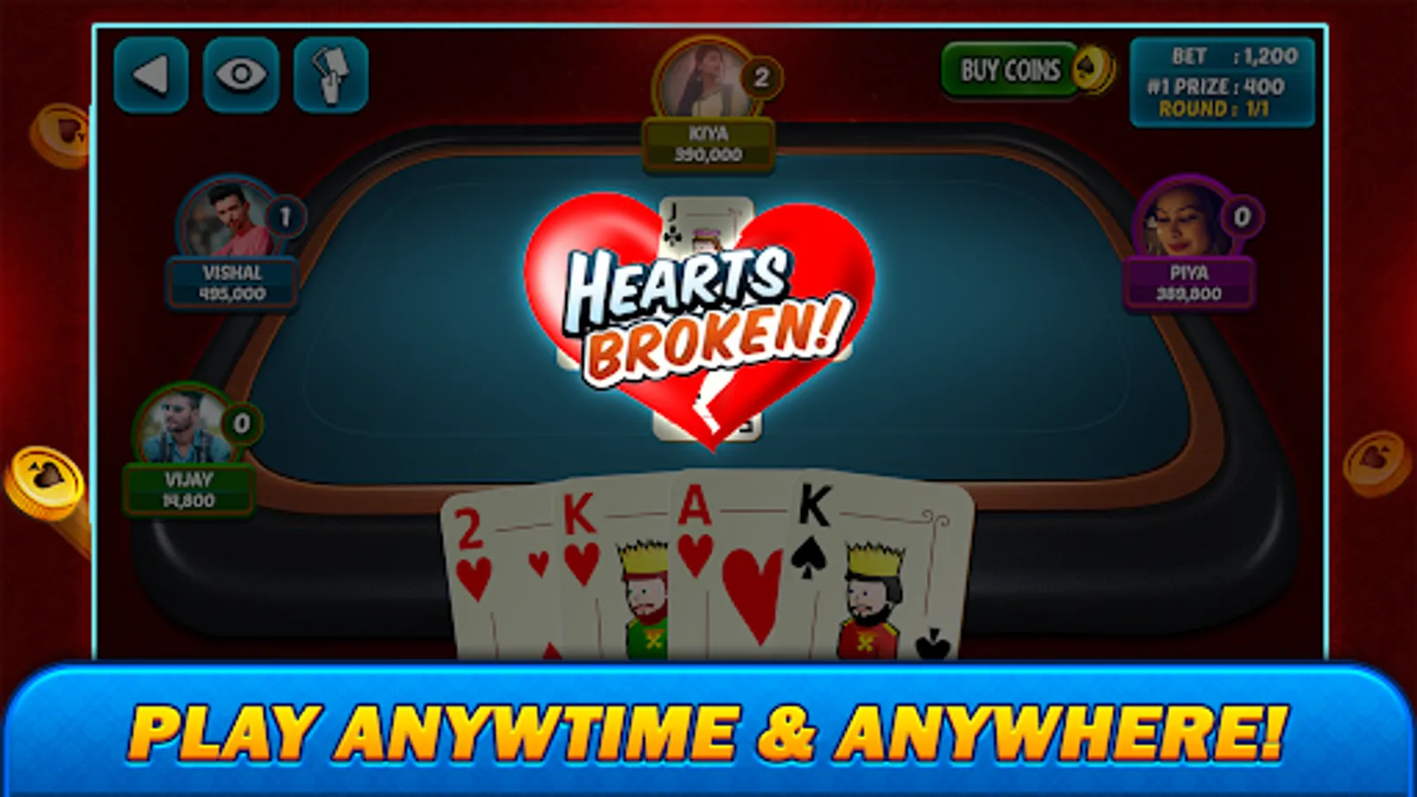 Hearts offers many exciting features, including: