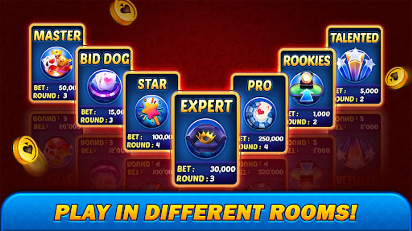 -Create Custom/Private Tables with custom bet amount, points and round.